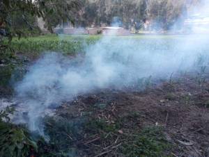 Aporcando las plantas                                        Humeando las parcelas