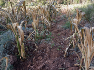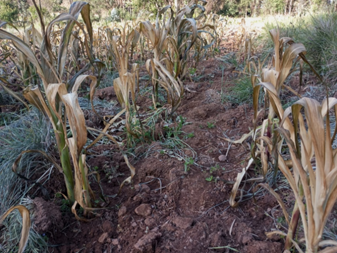 «Plantas de maíz y de papa, que se han secado por falta de lluvia.»