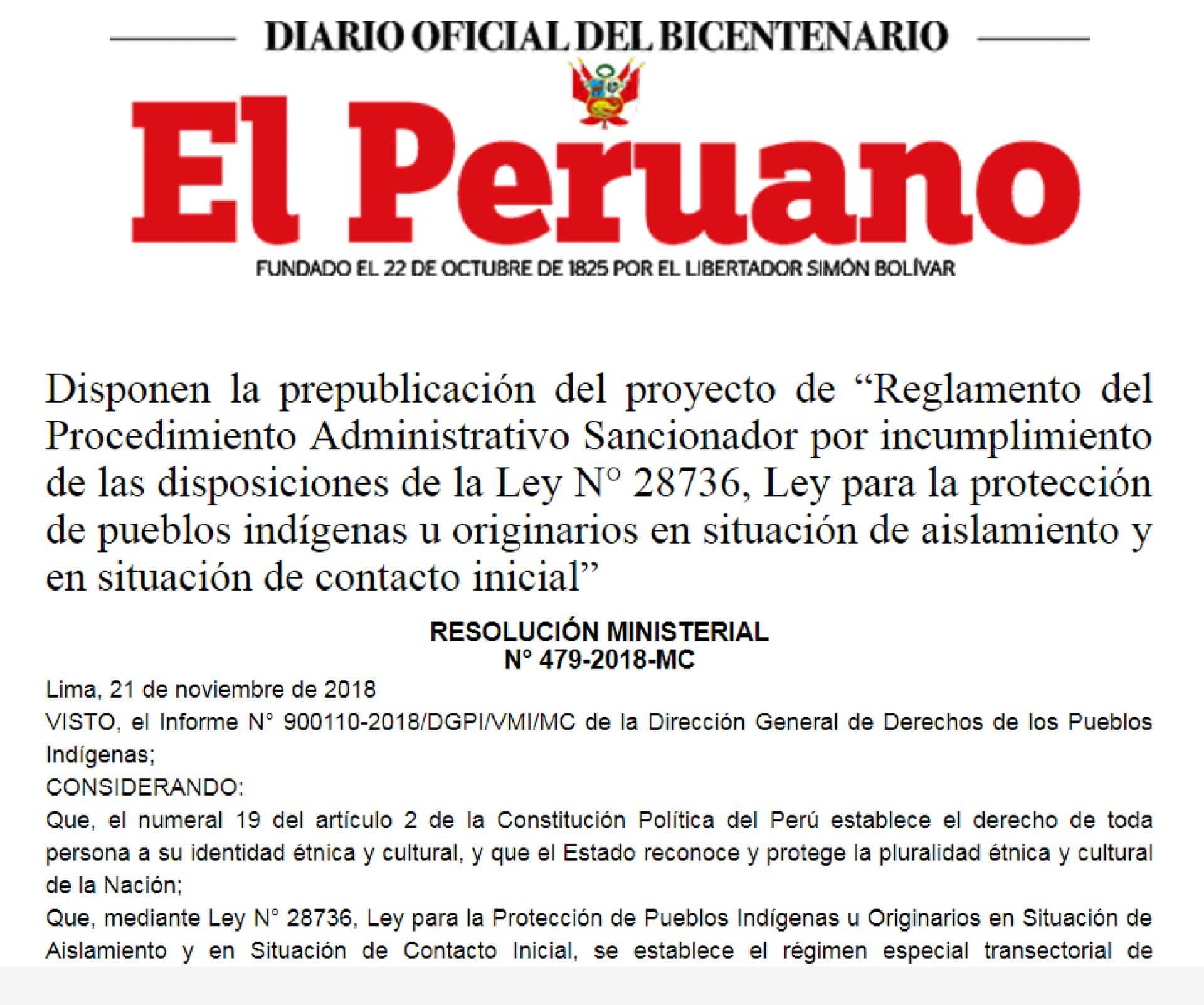 MINCUL pone a consulta pública proyecto de “Reglamento Sancionador” por incumplimiento de la Ley 28736, sobre los PIACI